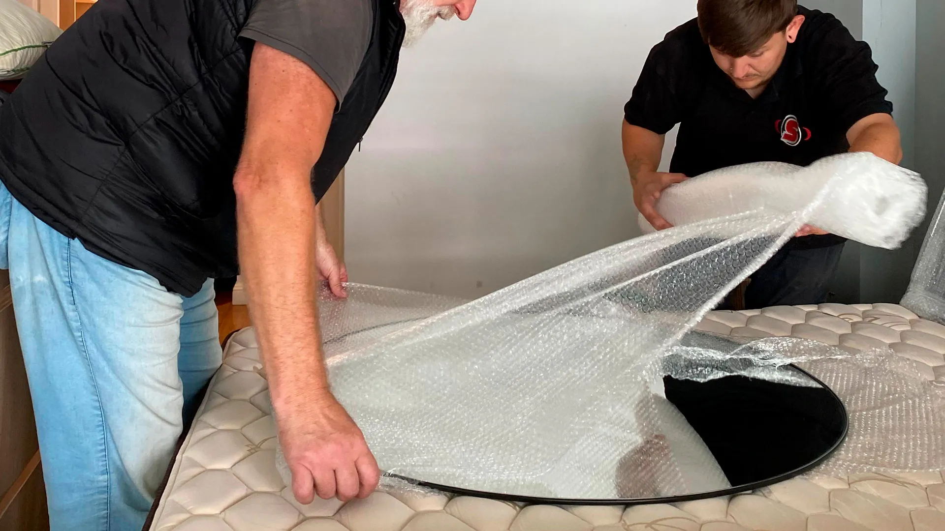 Desmontamos muebles y soportes con herramientas básicas profesionales, embalamos con cartón corrugado, film stretch, papel de embalaje o nylon alveolar (burbujas) según el caso.
